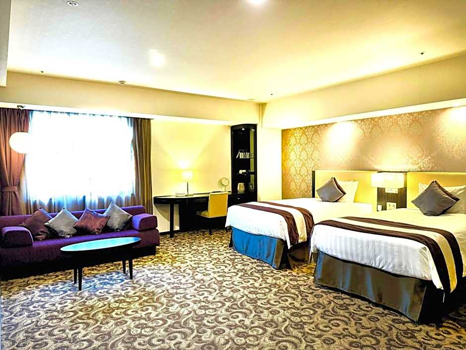 Carpeting, soft furnishings and indirect lighting give this contemporary room a soft and cozy feel. It's fitted with a TV, mini-fridge, humidifying air purifier and extra long beds. Free Wi-Fi and wired internet are provided.